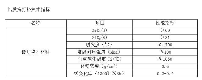 鋯質(zhì)搗打料是用鋯莫砂骨,粉料,以磷酸鋁為結(jié)合劑及外加劑,按比例配制而成,它具有高溫導(dǎo)熱率低,抗熱震性好,化學(xué)穩(wěn)定,對(duì)熔融玻璃和液態(tài)金屬有良好的耐蝕性,在氧化氣氛下工作穩(wěn)定,與熔融金屬發(fā)生化學(xué)反應(yīng),是一種優(yōu)良的熱硬性不定形耐火材料。