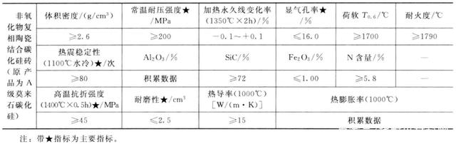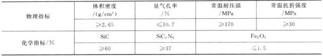 ③塞隆結(jié)合碳化硅磚指標結(jié)合相以塞隆為主等共價鍵化合物,也有人取名稱為非氧化物復相陶瓷結(jié)合碳化硅磚,其技術(shù)指標