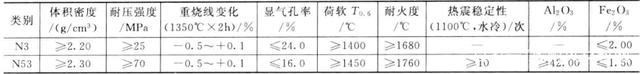 某廠干熄焦爐用主要耐火材料部分理化指標